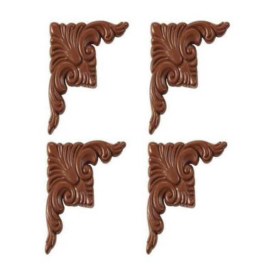 Corner Plates, Color Royal Oak, Corner Shape Square, Finish Wood Grain, Material Plastic, Overall Depth 1/4 in, Overall Diameter Not Applicable, Overall Height 1 1/2 in, Overall Width 3 1/2 in, Product Type Corner Plates, ADA Compliant Not Applicable, Package Quantity 4