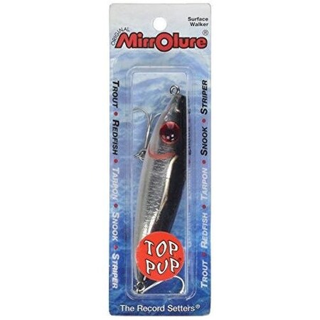 Mirrolure 74MR-21 Top Dog Pup Surface Black Bk/White/Silver 3.5in 5/8oz