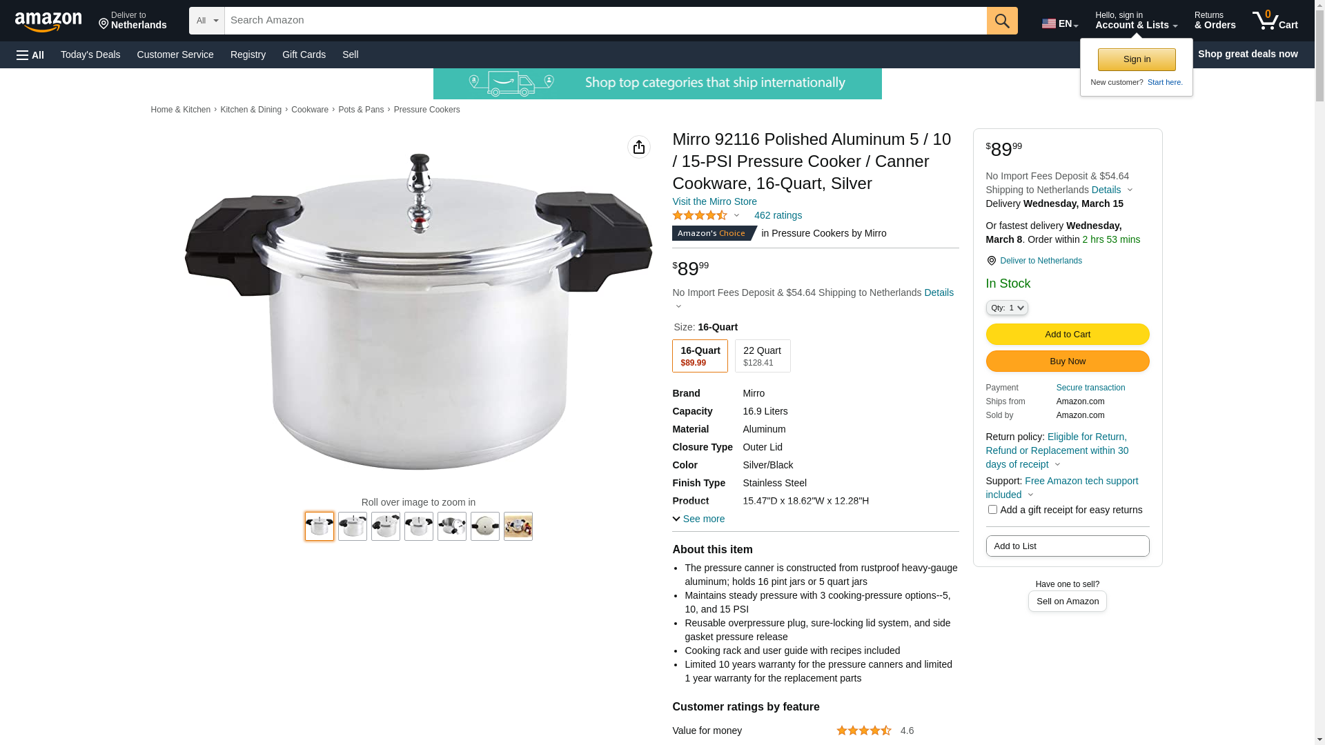 Mirro 92116 Polished Aluminum 5 / 10 / 15-PSI Pressure Cooker / Canner Cookware, 16-Quart, Silver