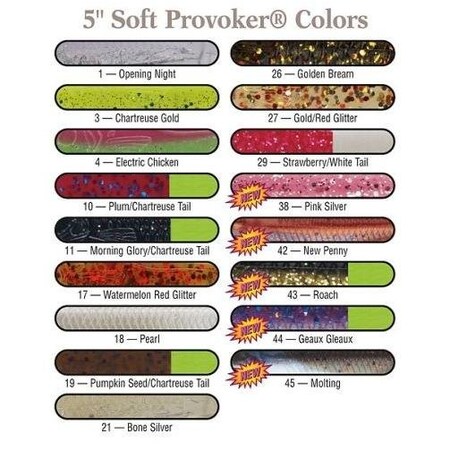 | Feature | Each Provoker features a natural baitfish profile with 3-D eyes, gills and scales and is injected with a secret "fish catching" scent. |