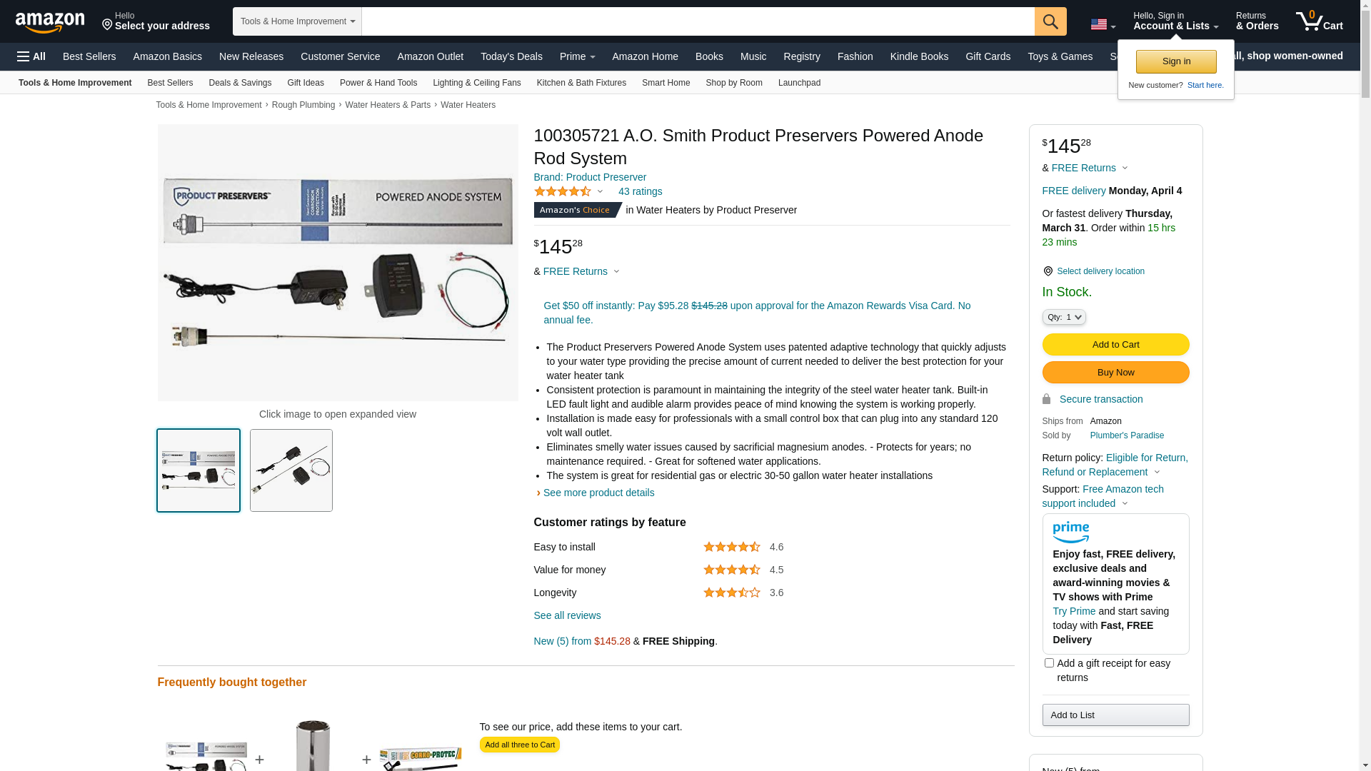 100305721 A.O. Smith Product Preservers Powered Anode Rod System