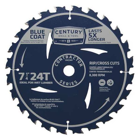 Century Drill & Tool 10203 Contractor Circular Saw Blade, 7-1/4" 24T
