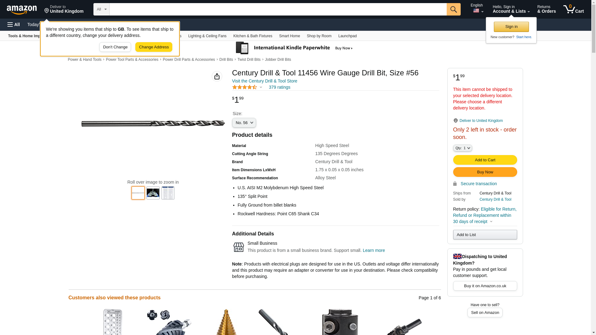 11456 Size: NO 56 Features: -Drill bit.-Material: Premium grade high speed steel.-Precision ground 118 degree points.-Designed to operate in stationary or portable tools.-General purpose drilling in wood metal and plastic. Dimensions: -5" H x 1.75" W x 0.06" D, 0.01 lbs.
