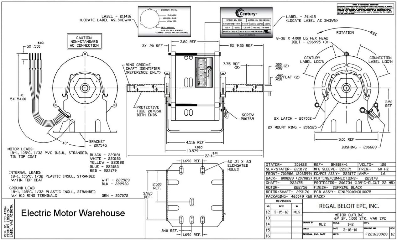Century CS89 Comfort Select Ecm Fan Coil Motor, Drop In or Retrofit for PSC, 1/10 HP, 1100 RPM, 120 Volt
