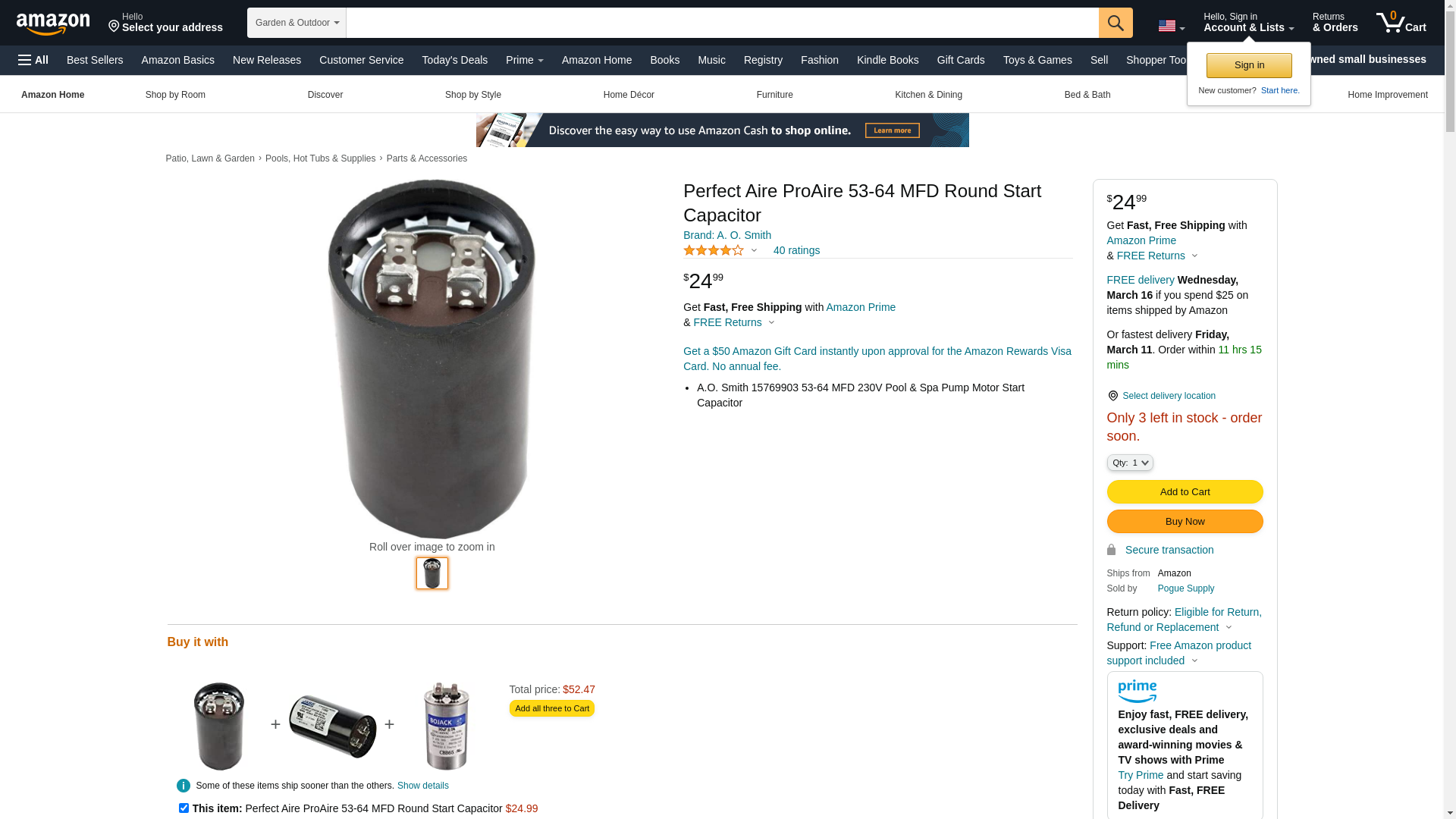 - A.O. Smith 15769903 53-64 MFD 230V Pool & Spa Pump Motor Start Capacitor