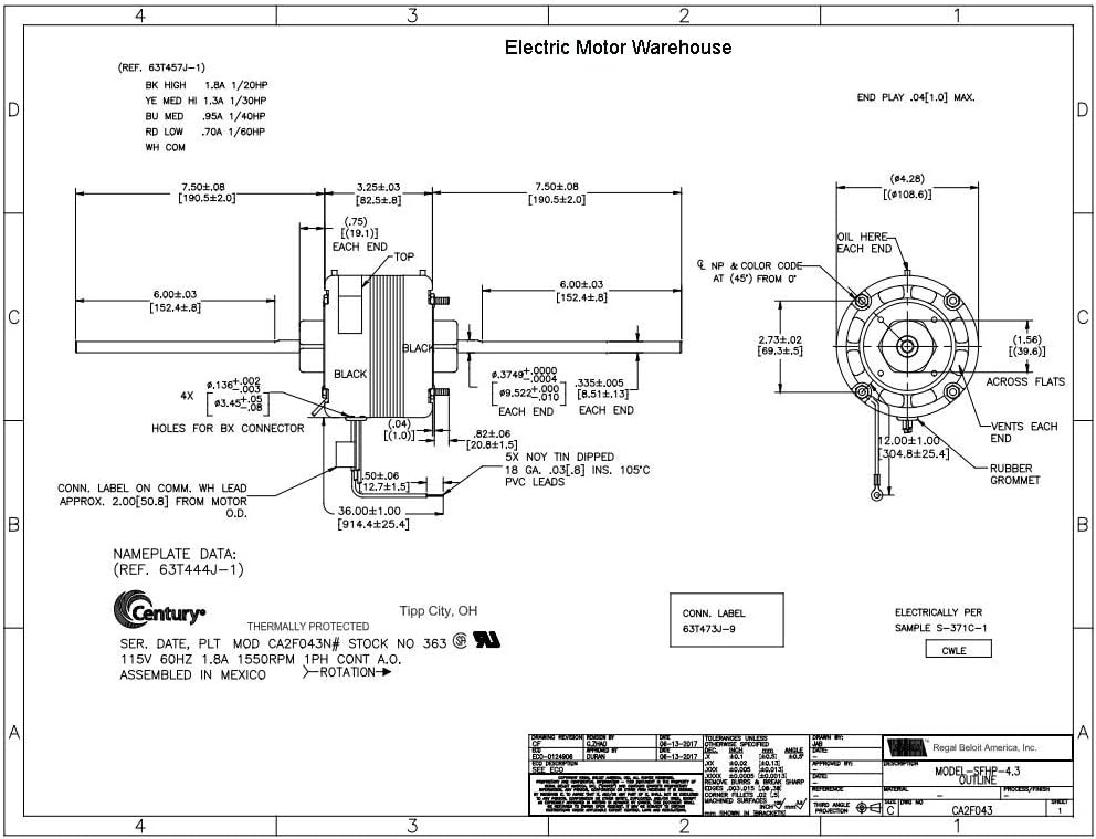 | Manufacturer | Century Electric Motor |