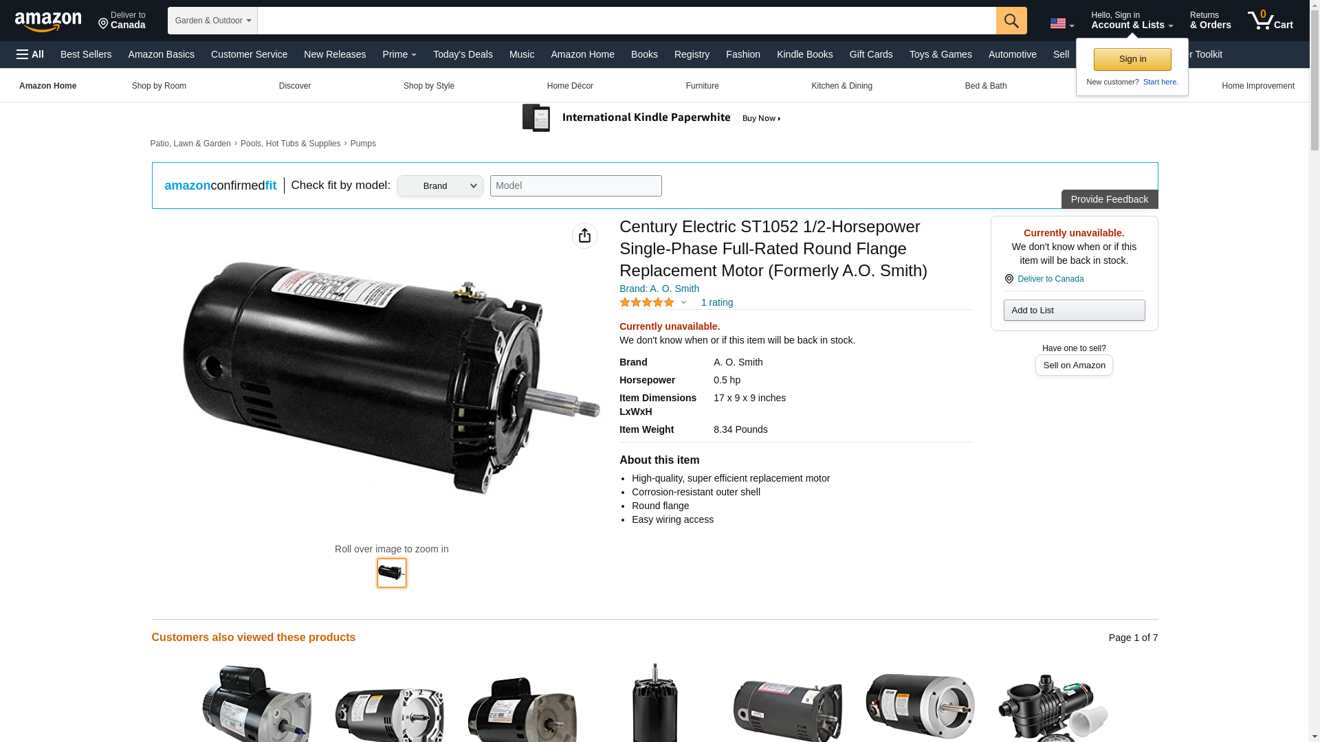 | Manufacturer | Century Electric/AO Smith Motors Co |