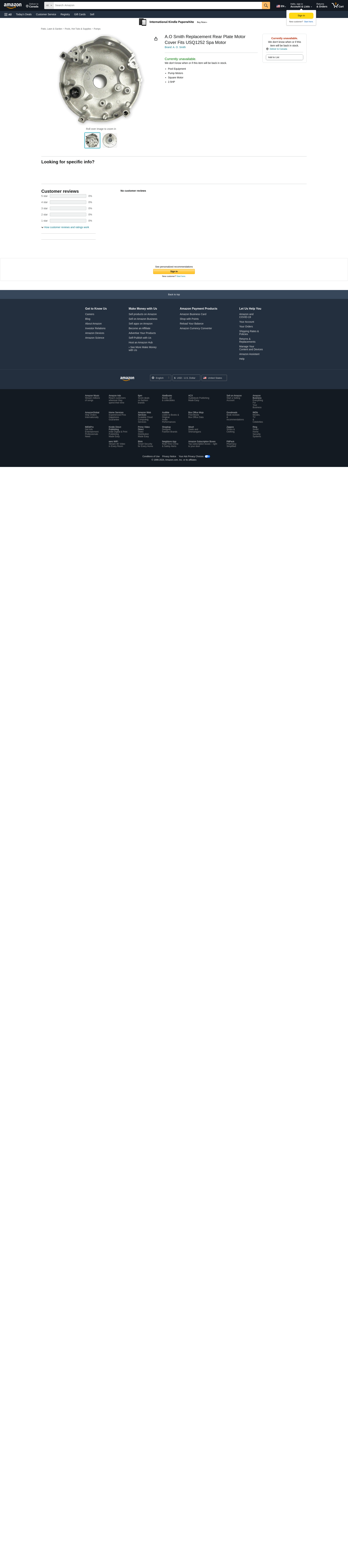 A.O Smith Replacement Rear Plate Motor Cover Fits USQ1252 Spa Motor