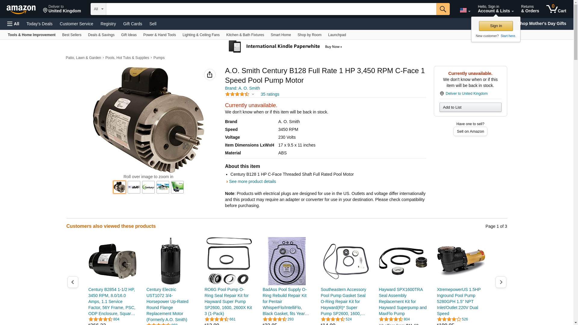 A.O. Smith Century B128 Full Rate 1 HP 3,450 RPM C-Face 1 Speed Pool Pump Motor
