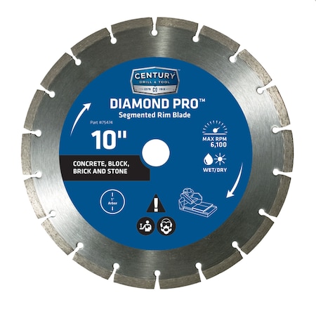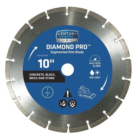 Century Drill & Tool 75474 Professional Segmented Rim Diamond Pro Saw Blade, 10"