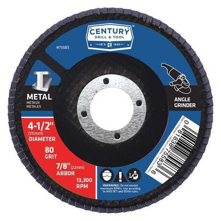 Century Drill & Tool 75583 Zirconia Flap Disc, 4-1/2" X 80 Grit