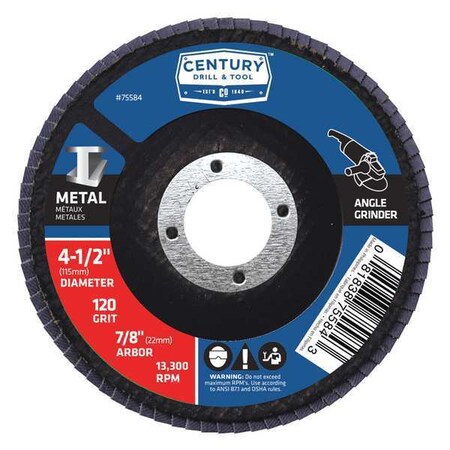 Century Drill & Tool 75584 Zirconia Flap Disc, 4-1/2" X 120 Grit