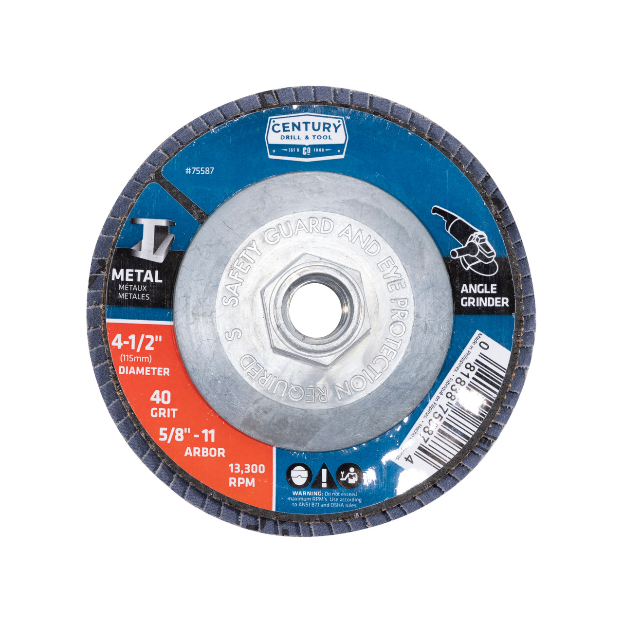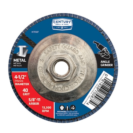 Century Drill 75587 Angle Grinder Flap Disc, 40 Grit, 5/8" Arbor | JB Tools