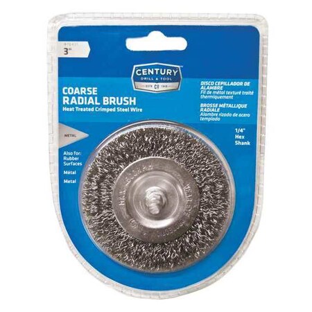 Century Drill & Tool 76431 Coarse Crimped Radial Wire Brush, 3", metal