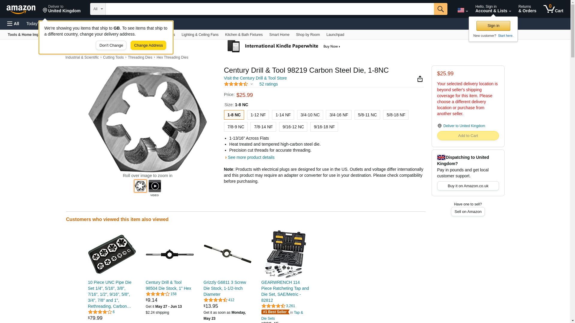 Century Drill & Tool 98219 Carbon Steel Die, 1-8NC