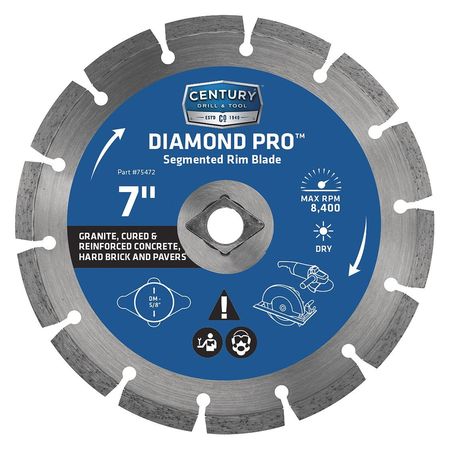 Century Drill & Tool 75472 Professional Segmented Rim Diamond Pro Saw Blade, 7"