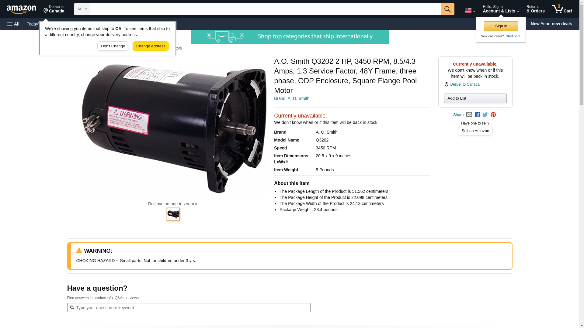 A.O. Smith Q3202 2 HP, 3450 RPM, 8.5/4.3 Amps, 1.3 Service Factor, 48Y Frame, three phase, ODP Enclosure, Square Flange Pool Motor