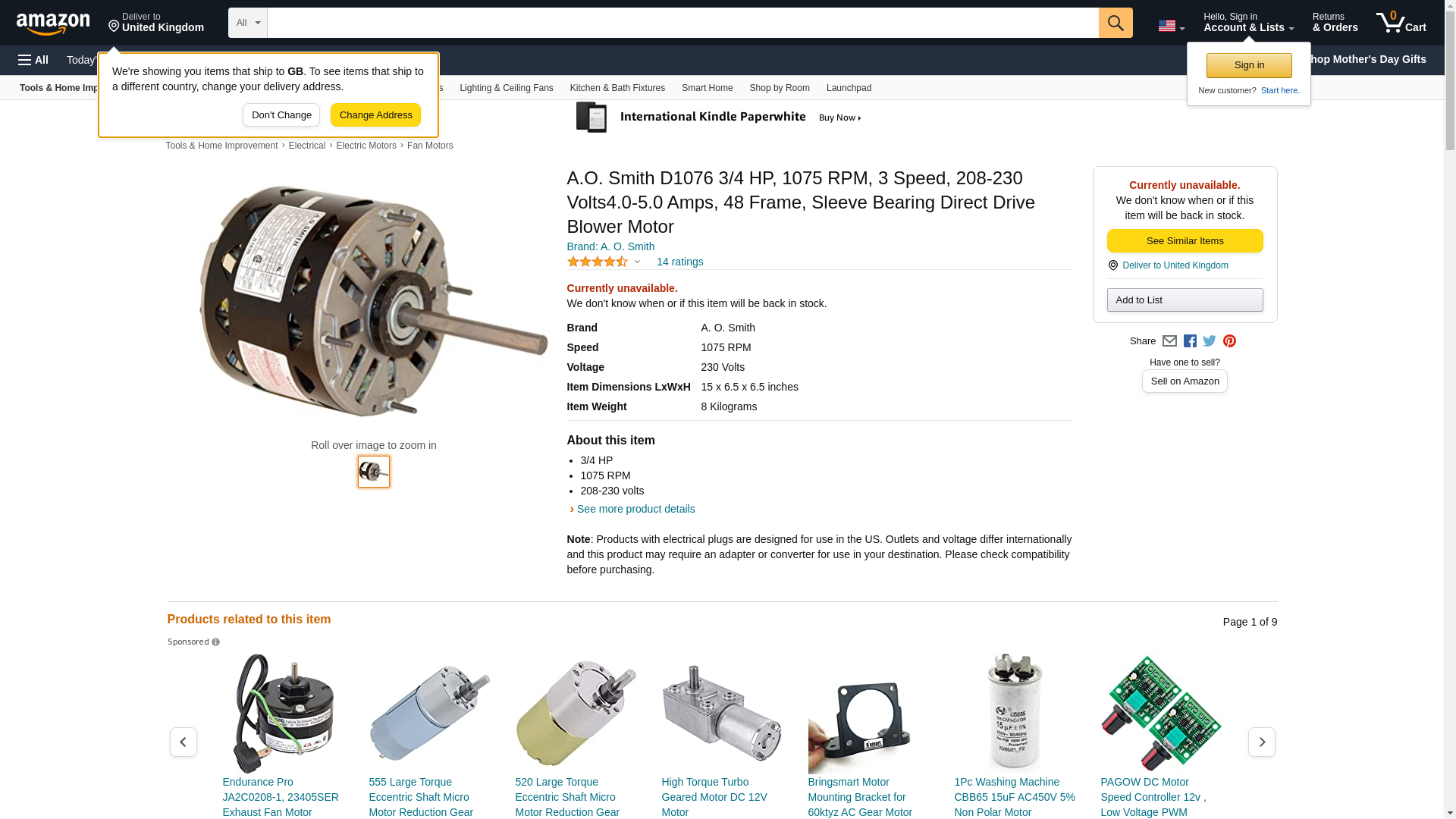 A.O. Smith D1076 3/4 HP, 1075 RPM, 3 Speed, 208-230 Volts4.0-5.0 Amps, 48 Frame, Sleeve Bearing Direct Drive Blower Motor by A. O. Smith