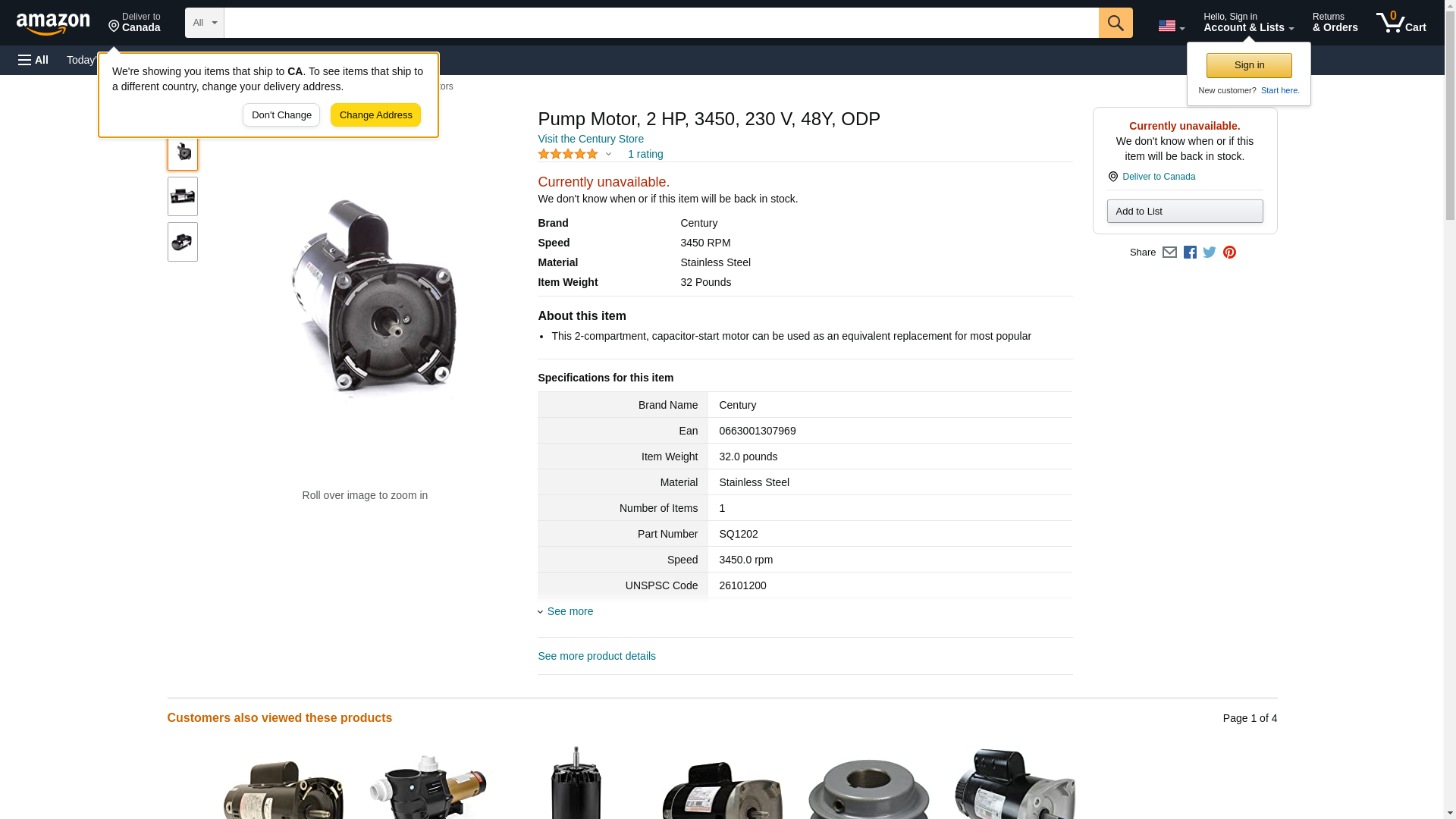 | Manufacturer | Century Electric/AO Smith Motors Co |