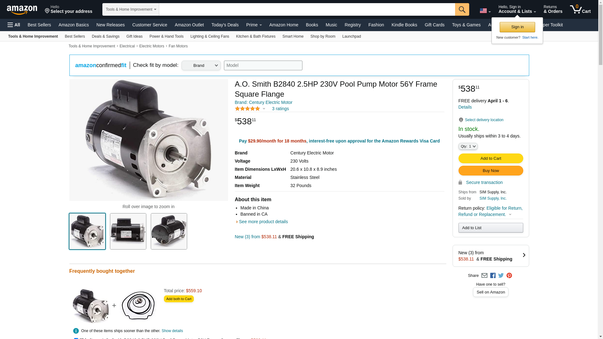 ![]() emotorpro.com | B2840 | 1 | -2 | 1 | 1 @ $398.85 |