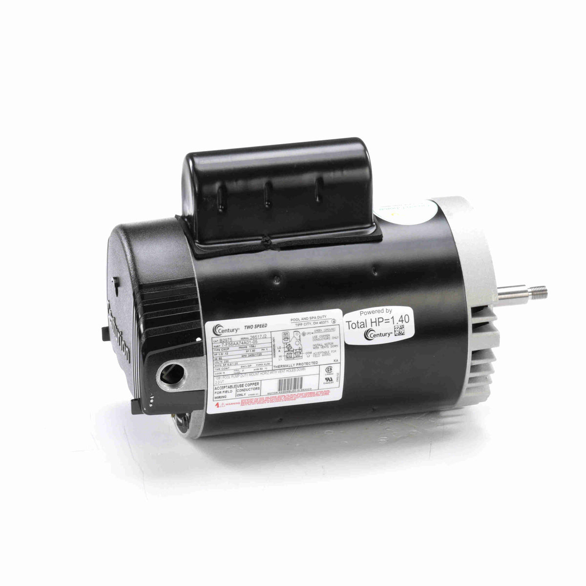 Century 1HP Motor, Permanent Split Capacitor, 3450/1725 Nameplate RPM, 230 Voltage, - B2975 Pool and Spa Pump Motor