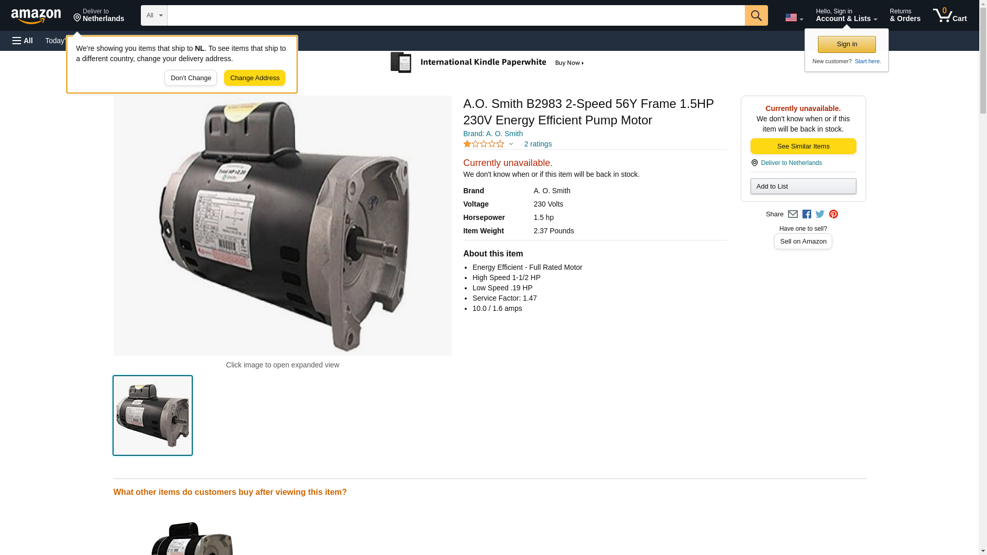 A.O. Smith B2983 2-Speed 56Y Frame 1.5HP 230V Energy Efficient Pump Motor