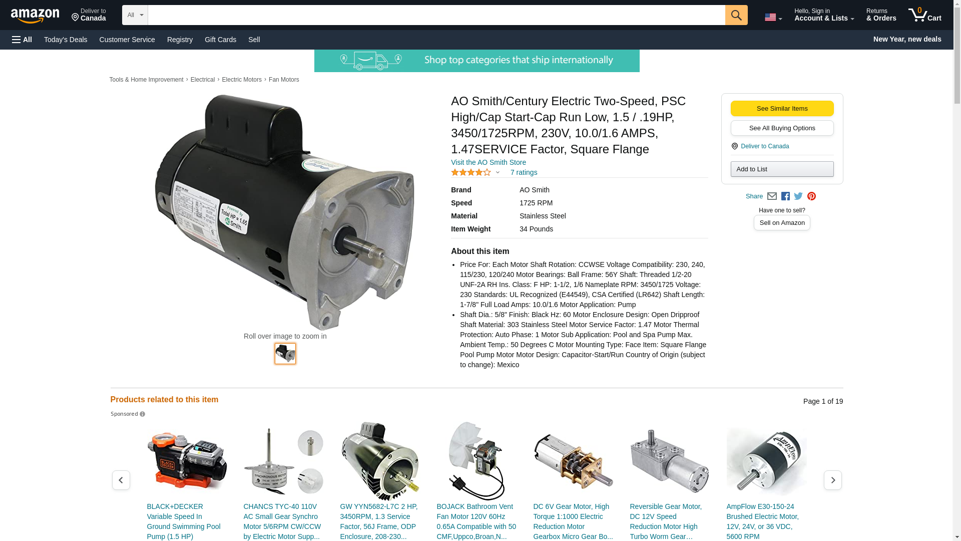 | Feature | Motor, Century,1.5hp,230v,2-Spd,56Yfr, SQFL,EE. |