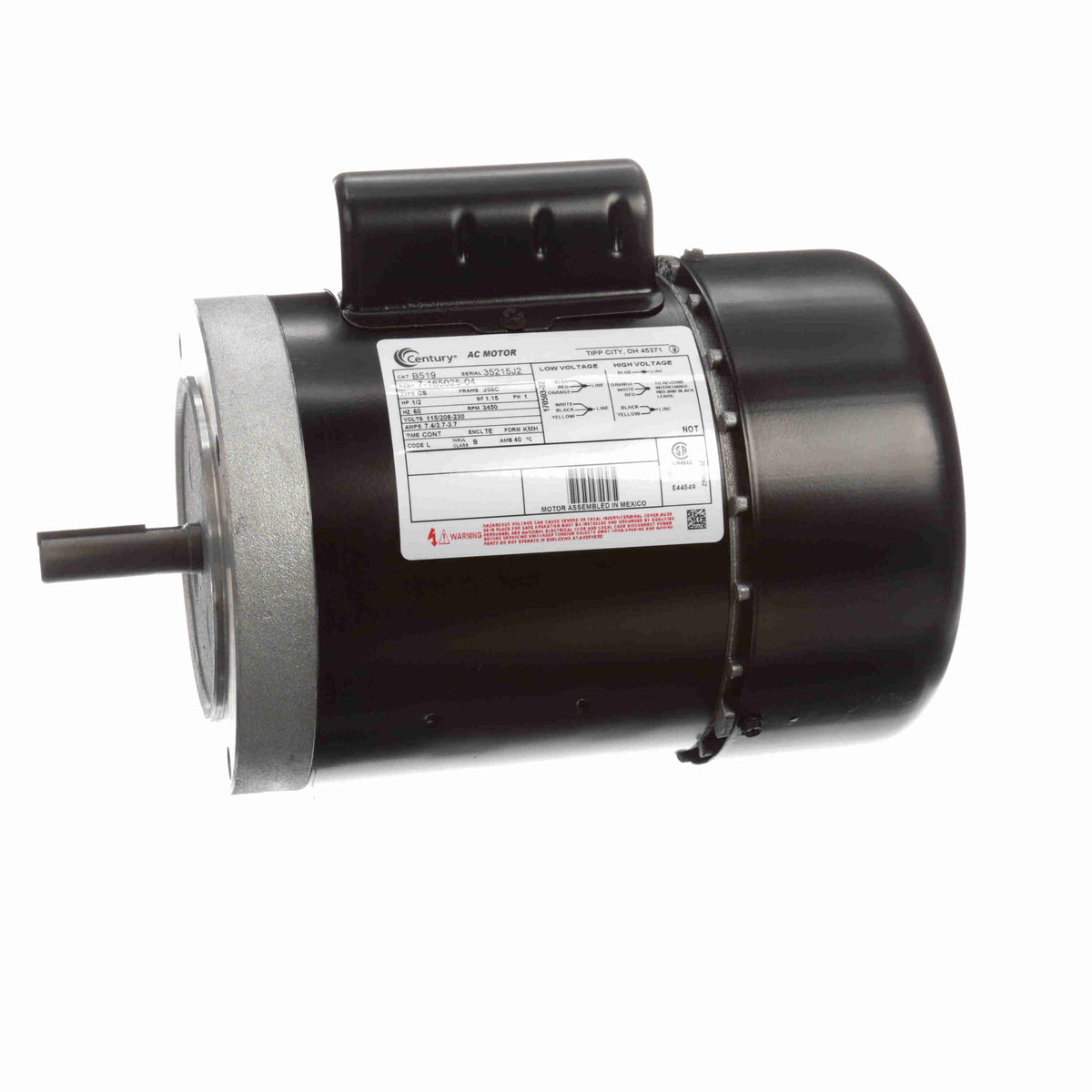 Century B519 Cap Start C-Face, 56C Frame, 1/2-HP, 3450-RPM, 115/208-230-Volt, 7.4-Amp, Ball Bearing Motor