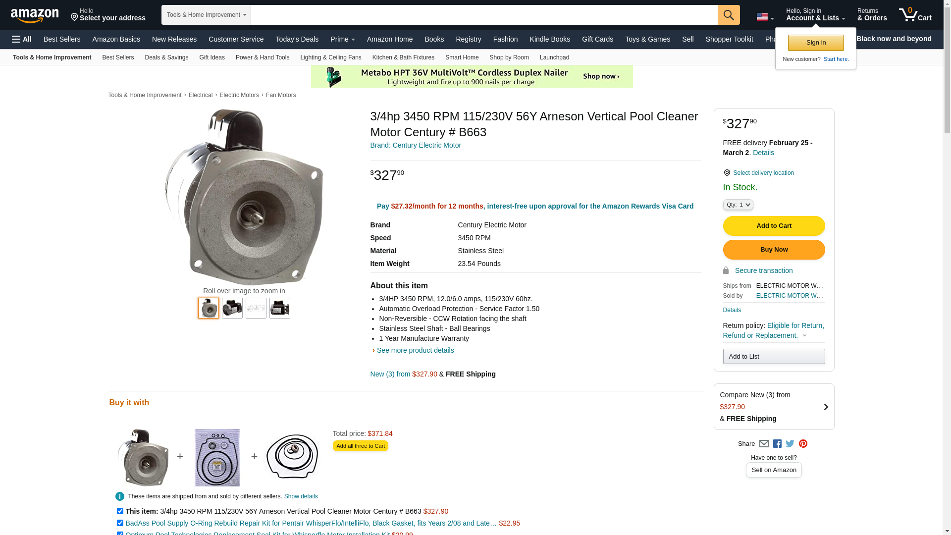 The Century Pool Cleaner Replacement Pump Motor is a powerfully designed replacement motor for your cleaner. Designed with ball bearings and a stainless steel shaft, the Century Pool Cleaner Motor is built to last for years and protects against wear and tear. It is engineered with a 40C Ambient, and its Class B Insulation prevents meltdowns caused by overheating. The Century Pool Cleaner Motor is an effective replacement motor for the Arneson Pool Sweet Pool Cleaner. It is available in 3/4HP and 230/115V.