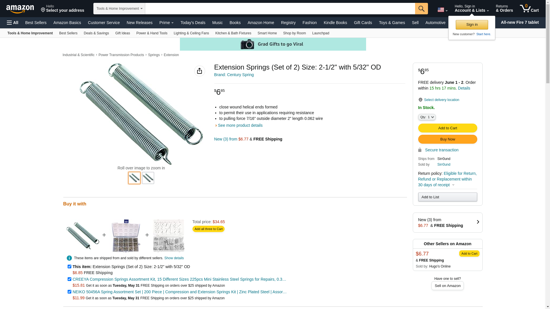 - Century Spring Corp 19720019 Century Spring C-135 Extension Springs 2/PK 7/16 x 2
