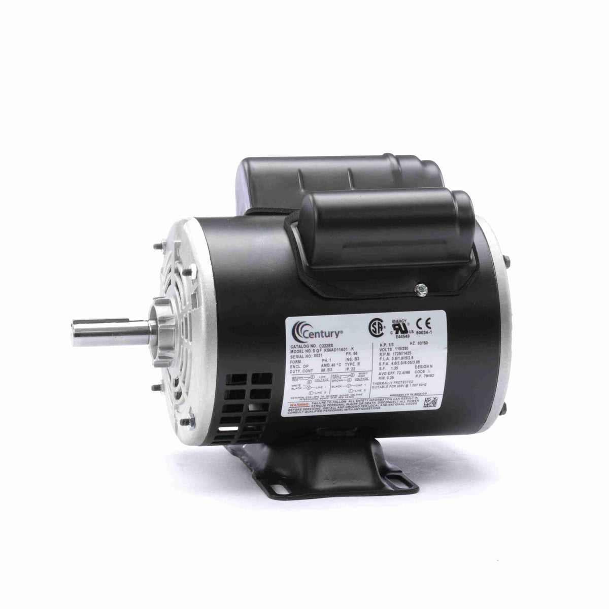 Century C222ES 1/3 HP 1725RPM 56 ODP 1/60/115/230 - MROSupply.com
