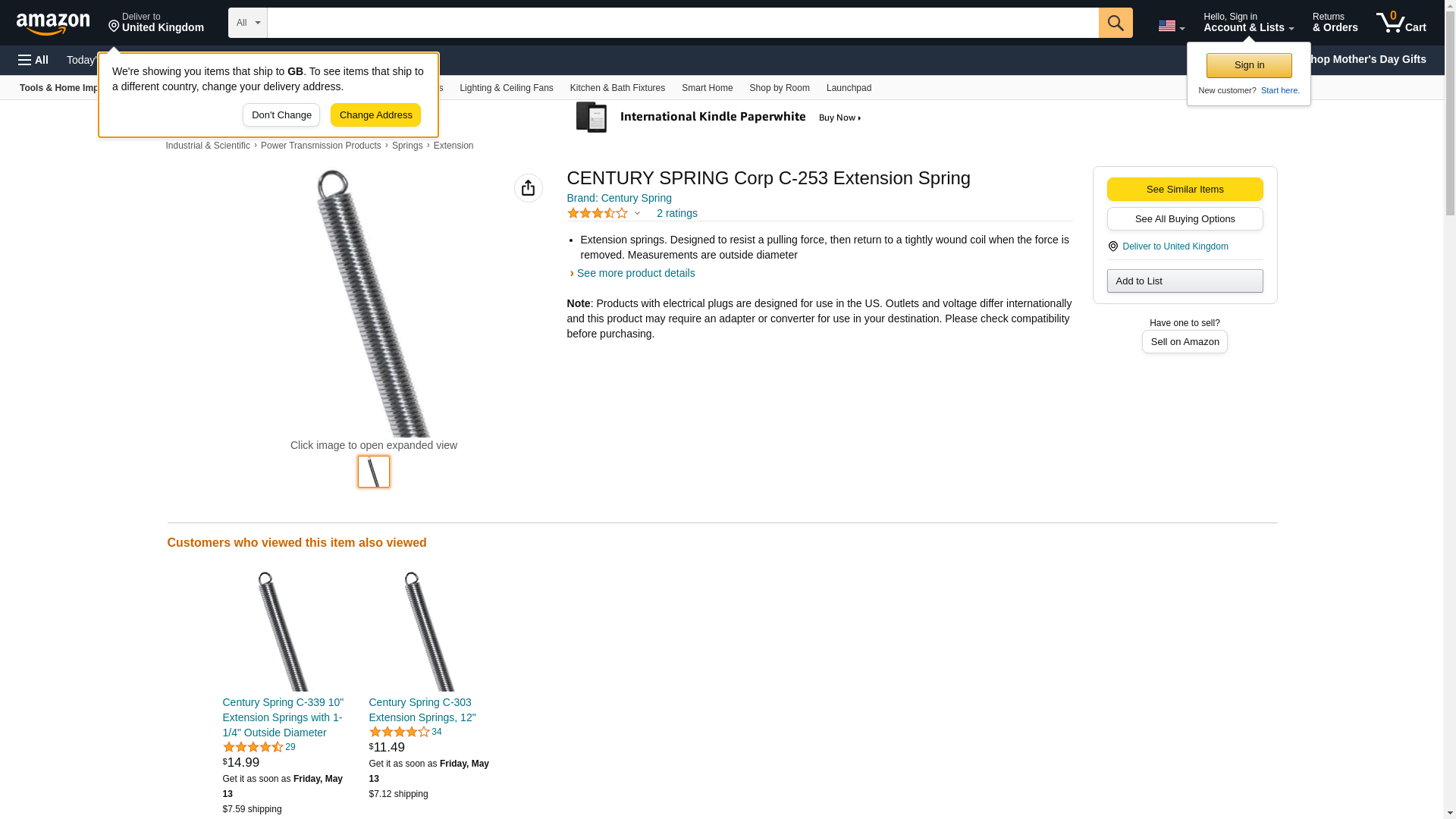 Century Spring C-253 16-1/2 Extension Springs 9/16 OD