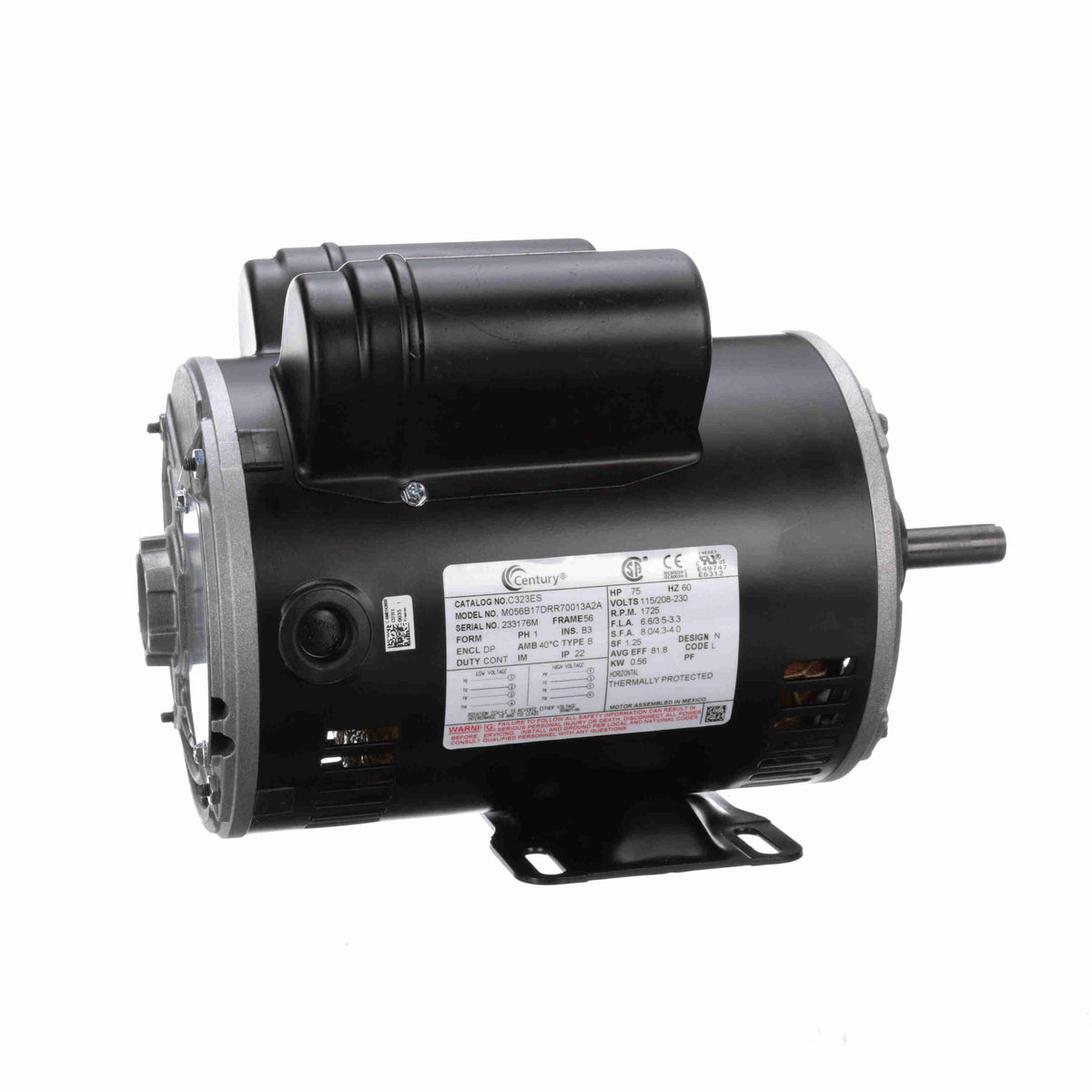 Century C323ES 3/4 HP 1725RPM 56 DP 1/60/115/208-230 - MROSupply.com
