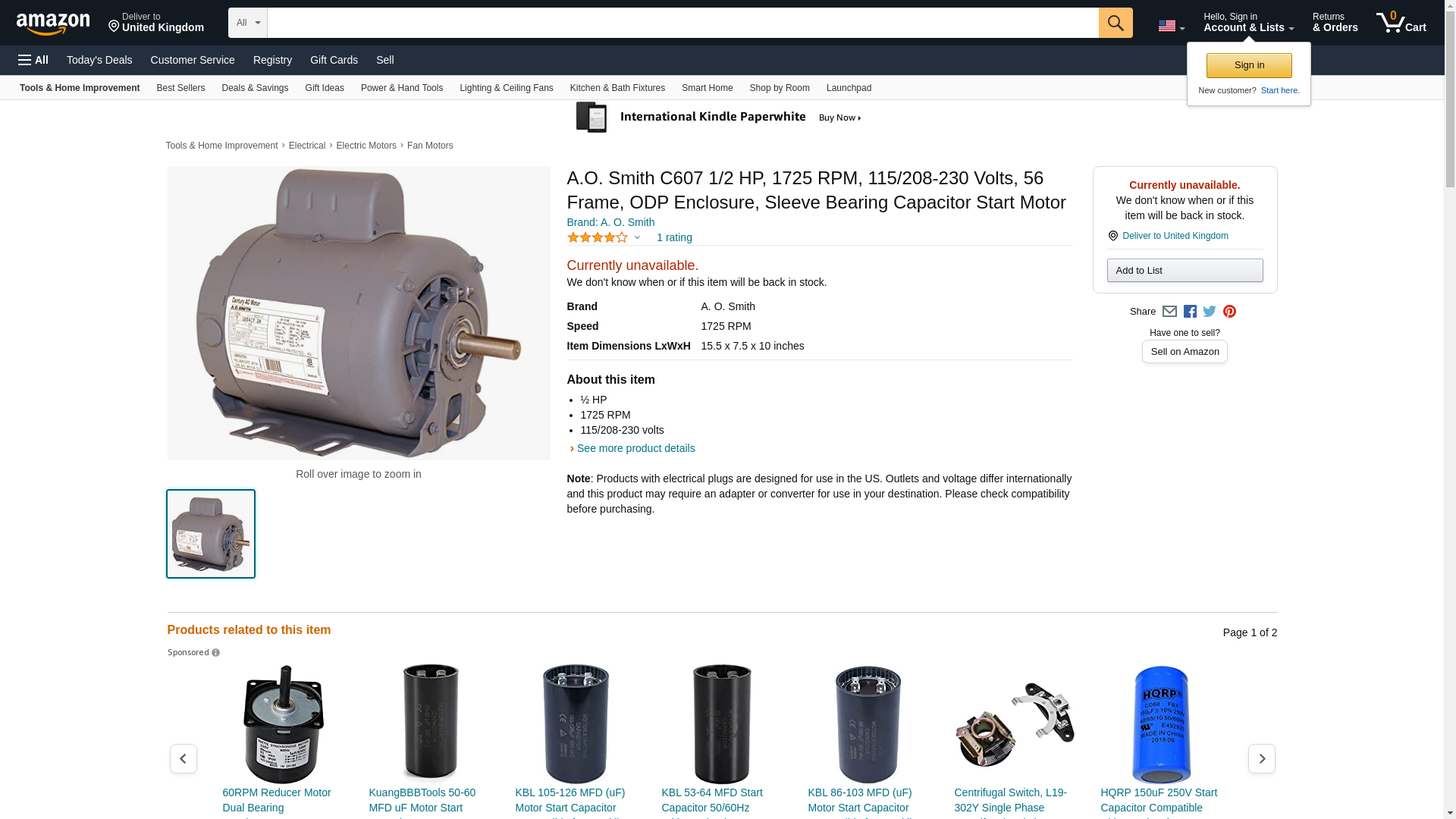 | Manufacturer | Century Electric/AO Smith Motors Co |