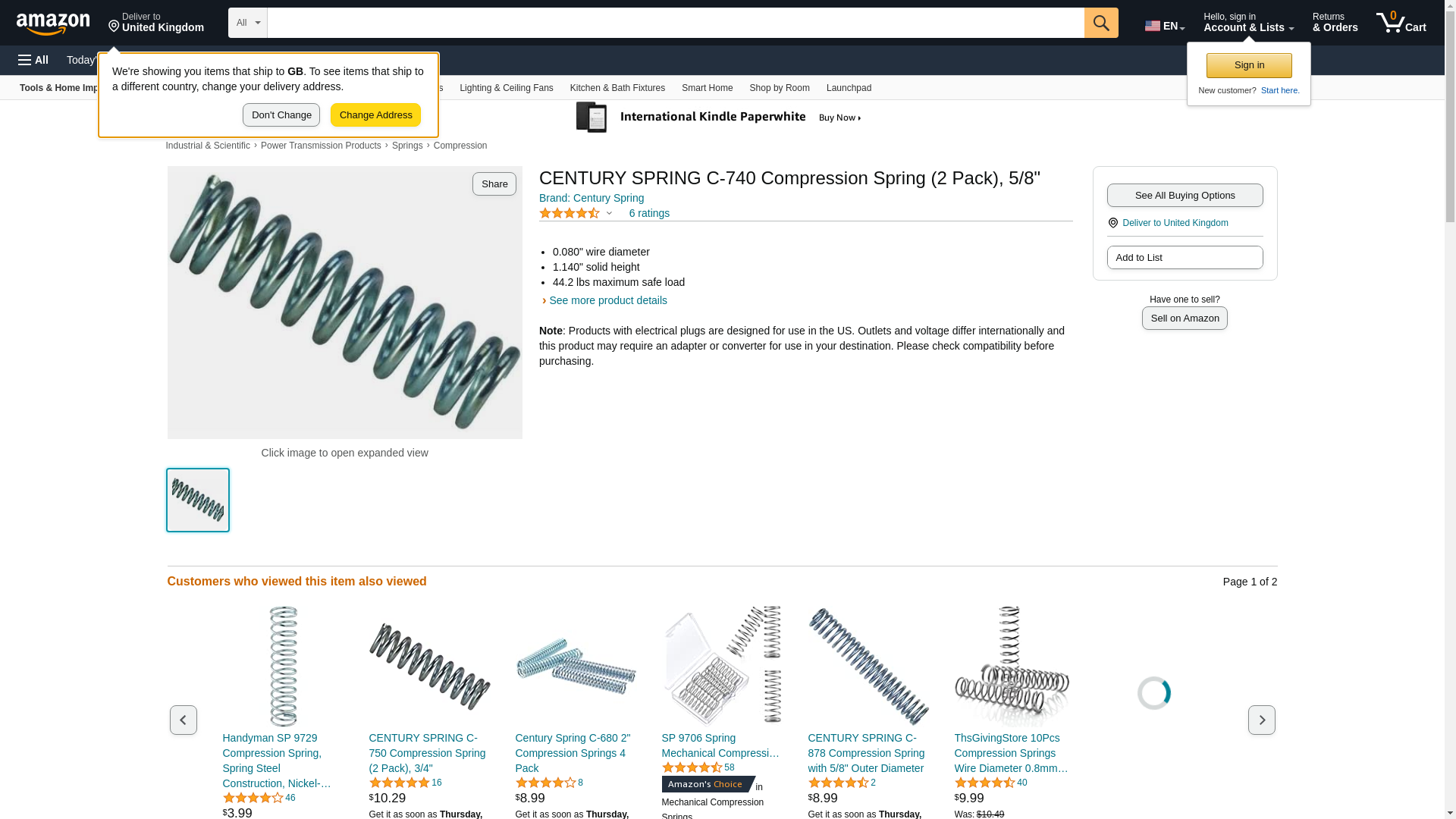CENTURY SPRING C-740 Compression Spring (2 Pack), 5/8"