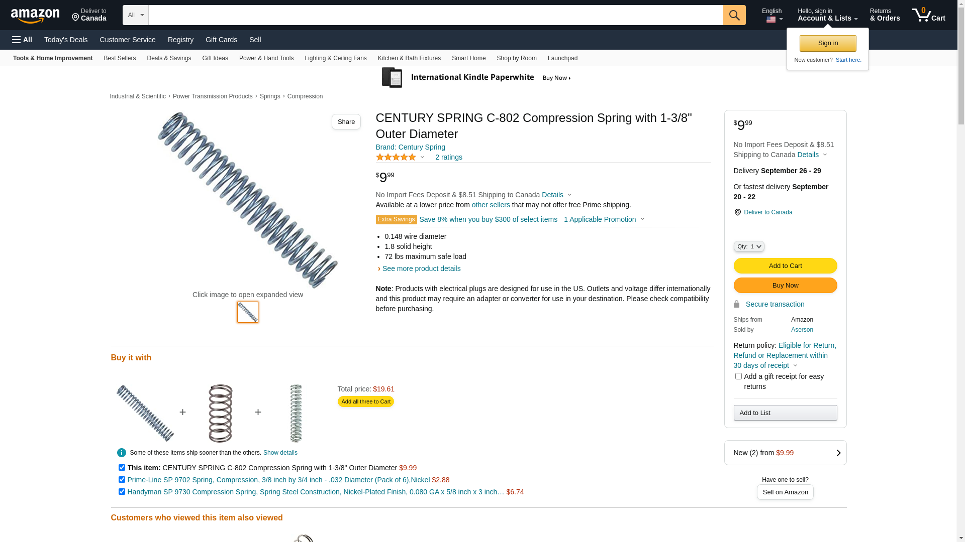 CENTURY SPRING C-802 Compression Spring with 1-3/8" Outer Diameter