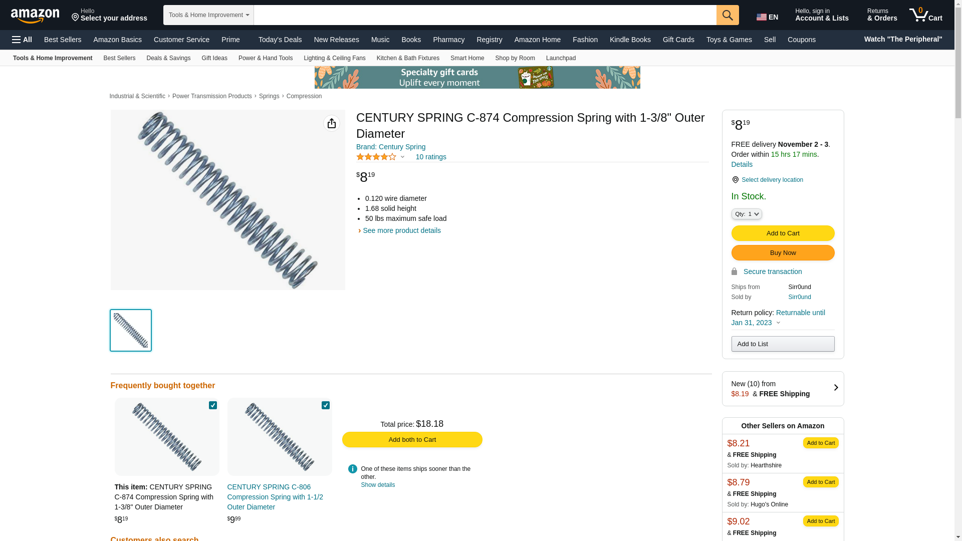 CENTURY SPRING C-874 Compression Spring with 1-3/8" Outer Diameter