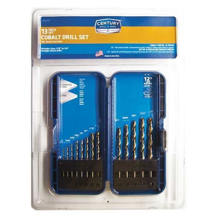Century Drill & Tool 26713 Pro Grade Cobalt Drill Set, 13 Piece, Made in The USA, for Stainless Steel and Hard Metal