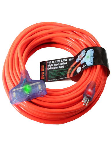 Pro Glo 12/3 Triple Tap 100 Foot Extension Cord Orange