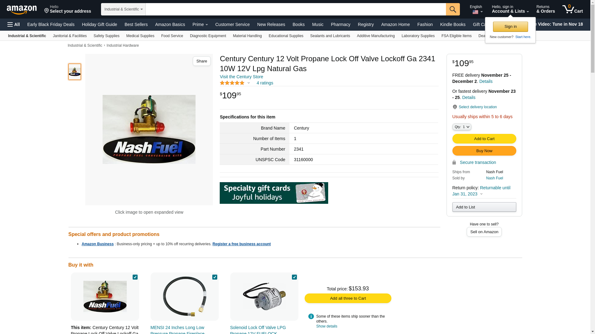 Century Century 12 Volt Propane Lock Off Valve Lockoff Ga 2341 10W 12V Lpg Natural Gas