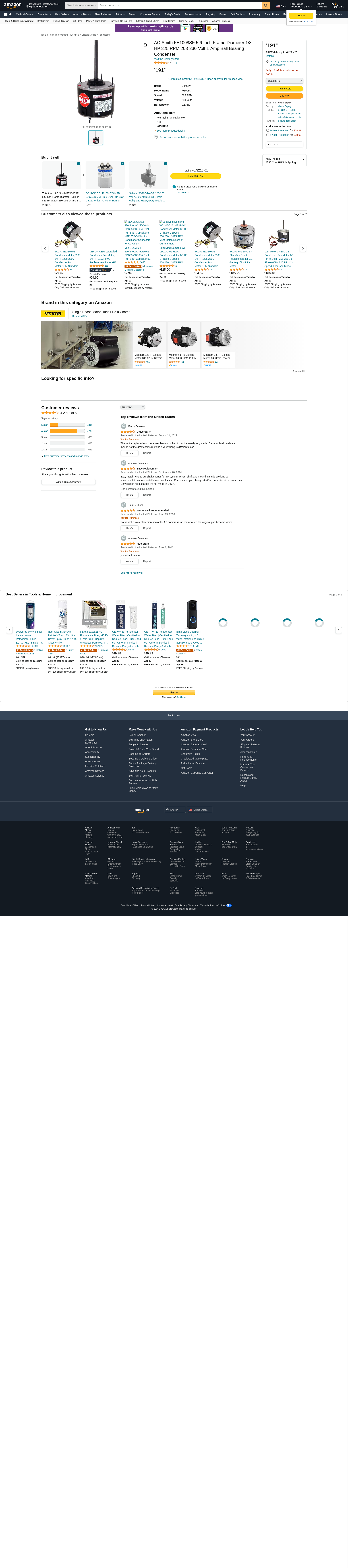 AO Smith FE1008SF 5.6-Inch Frame Diameter 1/8 HP 825 RPM 208-230-Volt 1-Amp Ball Bearing Condenser