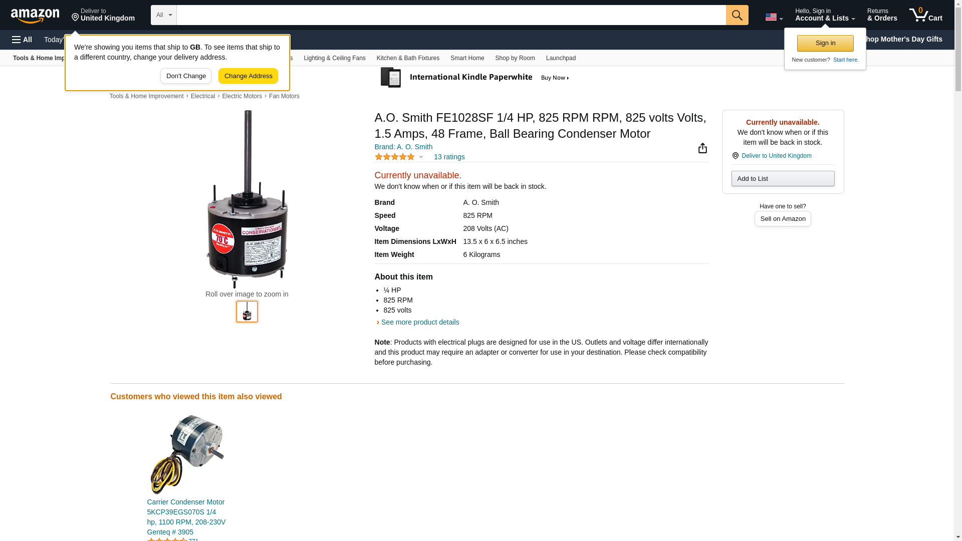 | Feature | 1/4 hp 825 RPM, 1-Speed, 1.5 amps, 208-230V |