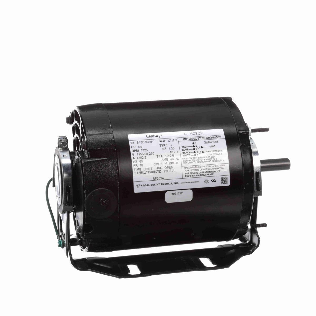 Century BF2024 Split Phase Resilient, 48/56 Frame, 1/4-HP, 1725-RPM, 115/208-230-Volt, 5.2-Amp, Ball Bearing Motor