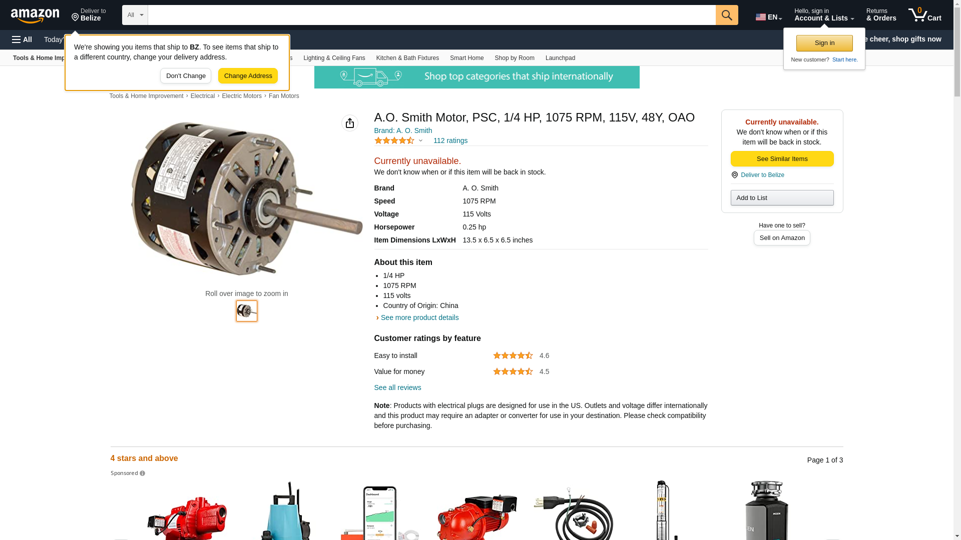 | Manufacturer | Century Electric/AO Smith Motors Co |
