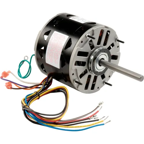 Direct Drive Blower Motor, Permanent Split Capacitor Motor Design, Open Air-Over Motor Enclosure Design, 1/3 HP, 1075 Nameplate RPM, Voltage 115, 4.9 Full Load Amps, 60 Hz, 1 Phase, 48 Frame, Motor Service Factor 1.0, Max. Ambient Temp. 40 Degrees C, Ins. Class B, Duty Continuous, No. of Speeds 3, Motor Mounting Type Stud, Motor Mounting Position All Angle, Motor Bearings Sleeve, Motor Thermal Protection Auto, Motor Shaft Rotation CW/CCW, Length Less Shaft 5 1/2 in, Shaft Dia. 1/2 in