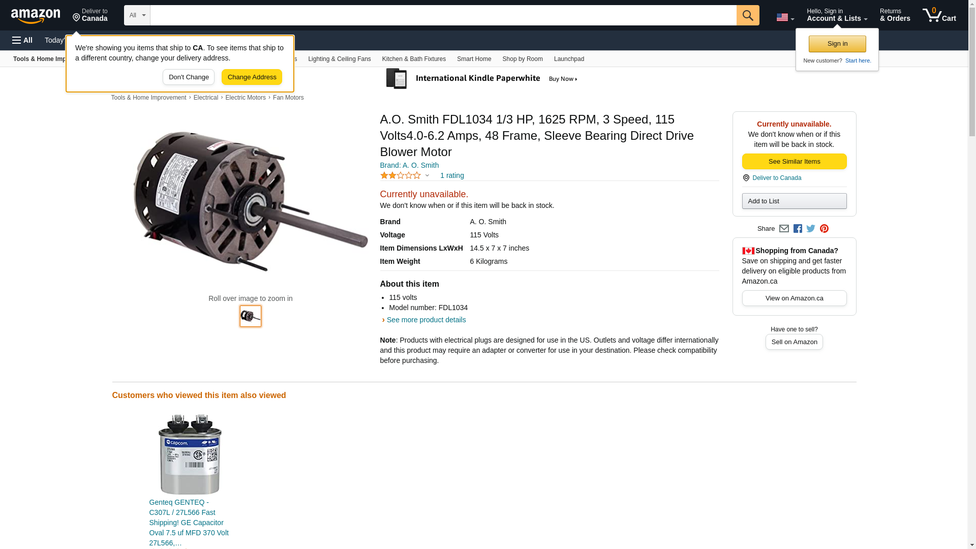 A.O. Smith FDL1034 1/3 HP, 1625 RPM, 3 Speed, 115 Volts4.0-6.2 Amps, 48 Frame, Sleeve Bearing Direct Drive Blower Mot...