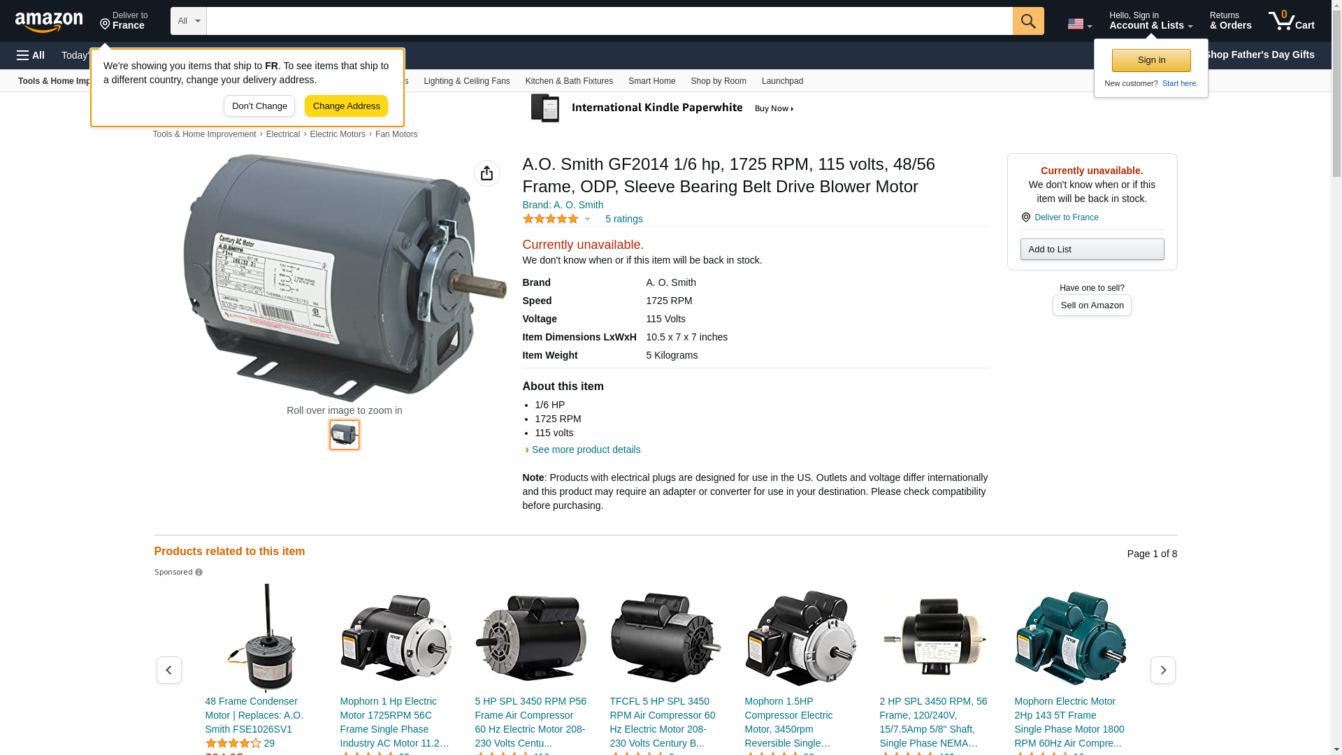 A.O. Smith GF2014 1/6 hp, 1725 RPM, 115 volts, 48/56 Frame, ODP, Sleeve Bearing Belt Drive Blower Motor. 1/6 HP. 1725...