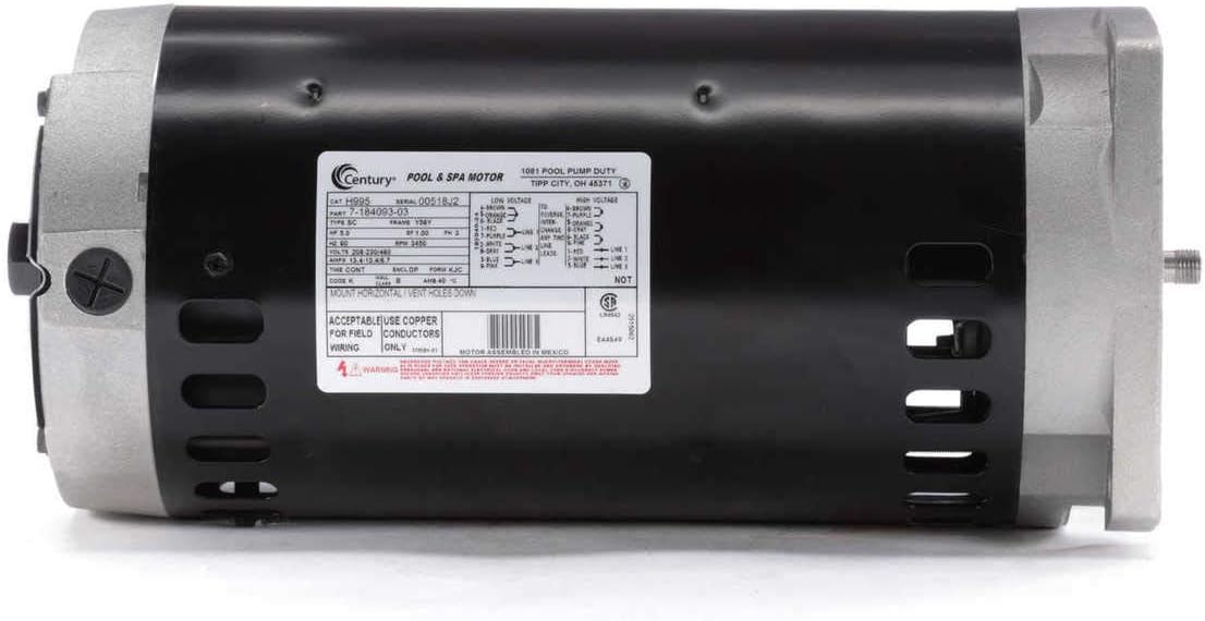 Century 5 HP Pool and Spa Pump Motor, 3-Phase, 208-230/460V, 56Y Frame Black H995 - 1 Each