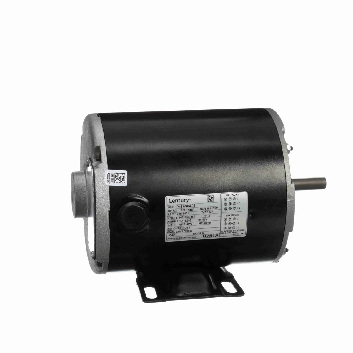Three Phase TEFC Motor 208-230/460 Volts 1800 RPM 1/3 H.P. :-</br></br> H.P. : 1/3 Speeds : 1 Rotation : Reversible RPM : 1800 Bearings : Ball Diameter (In.) : 5 5/8 Enclosure : Totally Enclosed Fan-Cooled Mounting : Rigid Base Service Factor : 1.00 Shaft Length (In.) : 1 5/8 Motor Type : 3 Phase Frame : 48 Phase : 3 Shaft Diameter (In.) : 1/2 Shafts : 1 Full Load Amps : 1.2 - 1.2 - 0.6 Shaft Dimension (In.) : 1/2 x 1.625 Voltage : 208-230/460