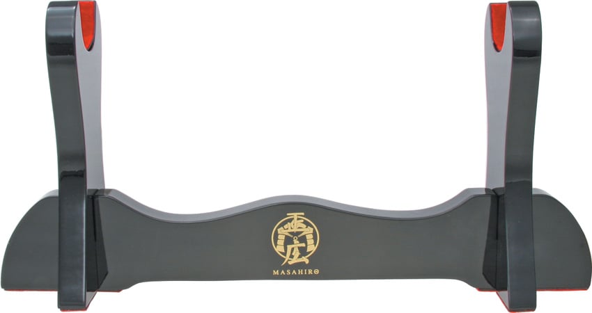 snippetBlack lacquer finish wood tabletop stand holds one sword. Measures 15 5/8" x 7 1/2". Made in China.